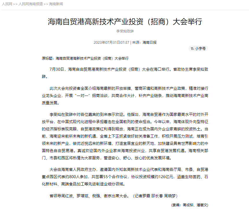中霆世紀參加海南自貿港高新技術產業(yè)投資(招商)大會